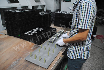将产品胶套取下,依次放入包装盒里